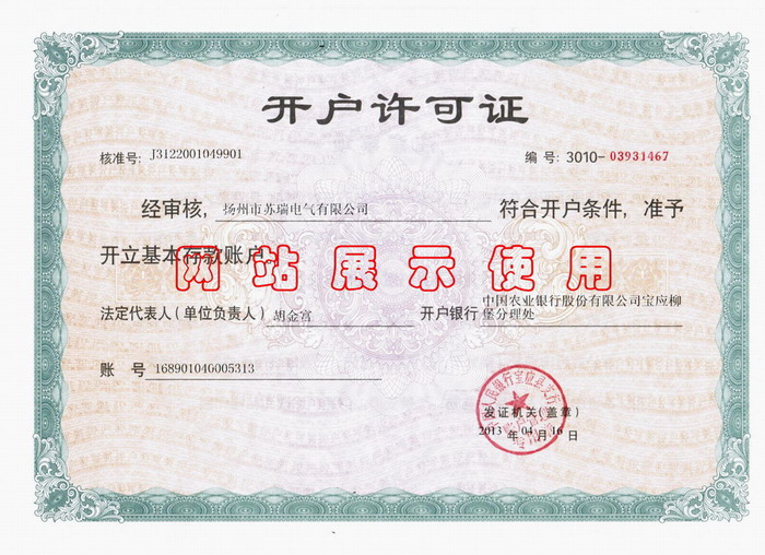蘇瑞電氣開戶許可證