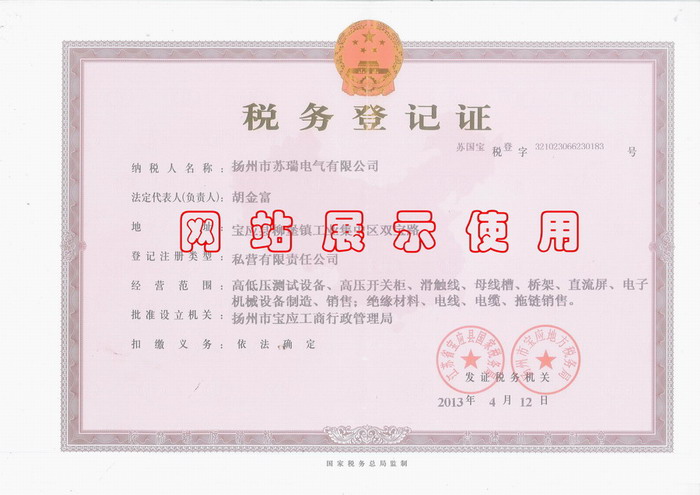 蘇瑞電氣稅務(wù)登記證